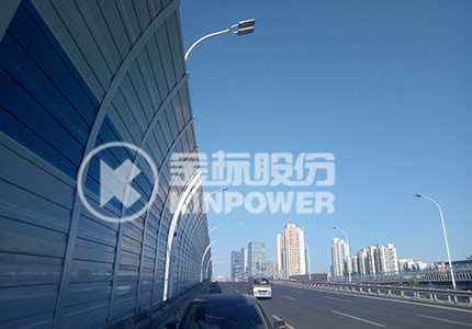 市政道路弧形聲屏障 弧形聲屏障分為頂部弧形聲屏障(小弧形),大弧形聲屏障,全封閉聲屏障(整體弧形)。